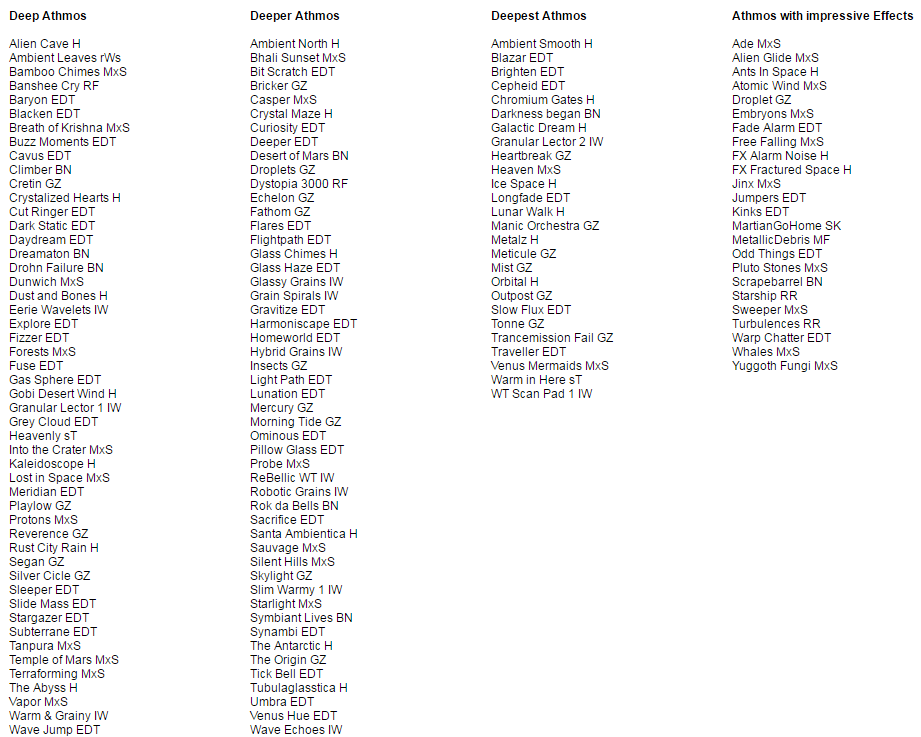 Ambient, Electronica, Chillout, Space, New Age, Meditation, Soundtrack, IDM, Cinematic, Downtempo, Industrial, Synthpop, Modern Classic, Jazz, TV