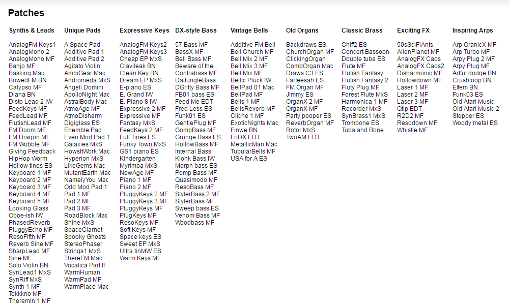 - Characteristic synths, emotional electric pianos, DX-style vintage bass, cutting leads, unique pads, retro-ish bells and expressive keys & organs.