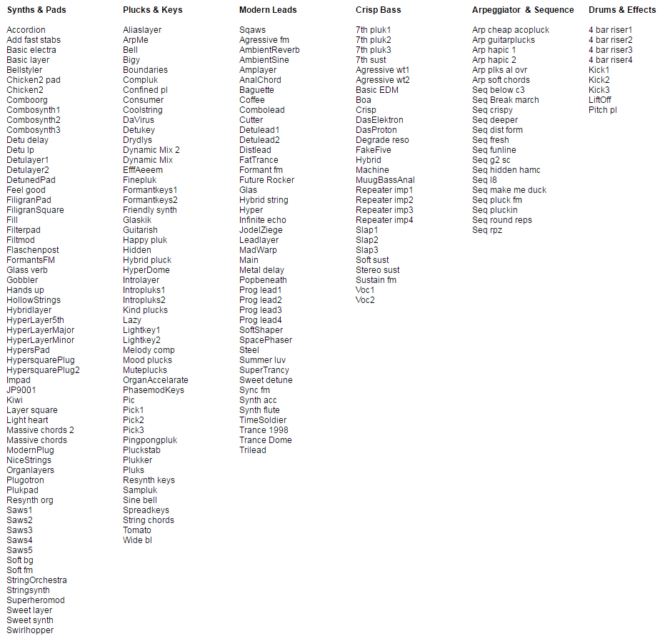This set is suitable for EDM, Pop, Dubstep, Electronica, Dance, Trance, Synthpop, IDM, Rave, Complextro, Dirty Dutch, IDM, Progressive, Techno, House, HipHop and a wide variety of other music genres.