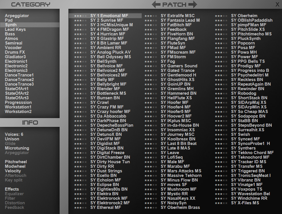 Gladiator supports up to 18 oscillators per voice with stacking, 4x stereo unison and crystal clear sound-quality.