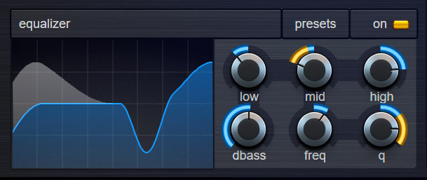 A smart equalizer with dynamic bass-boost and psychoacoustic-processing is provided to make your sound sit right in the mix. The EQ is easy to tweak since a display visualizes the frequency-response in real-time.
