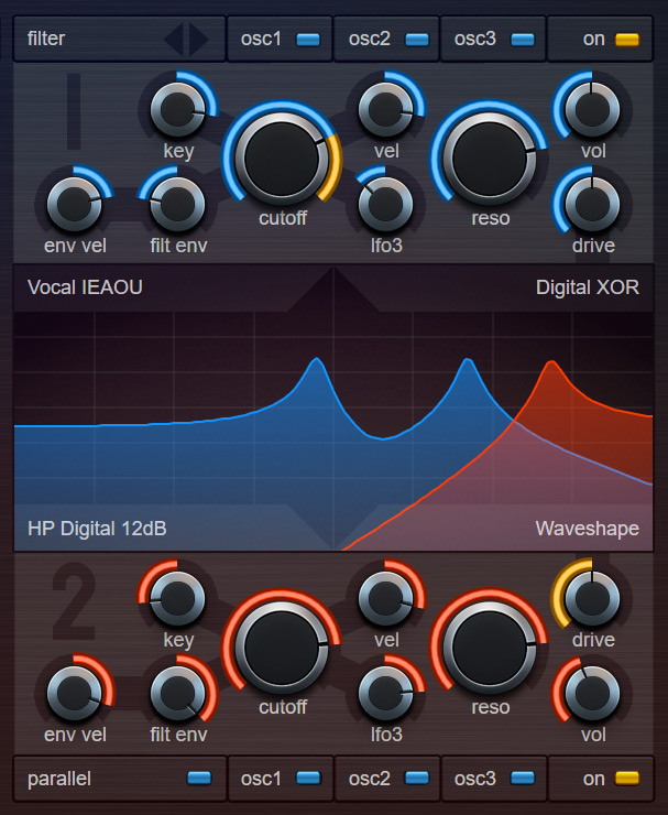 Many filter-types are exclusive and not available from other companies, which results in a wide range of unique sounds that cannot be produced by other synthesizers. All filters are musical useful and have really different sonic characteristics.