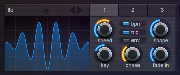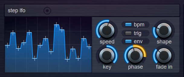 The Step LFO's design was inspired by step-sequencers and can be used to create rhythmic sequences and trance-gates. The Step LFO uses a Multi-Stage Envelope in which you can set up your own shape by dragging envelope points. It can be routed to any target in the mod-matrix (filter-cutoff, volume, pitch, etc).