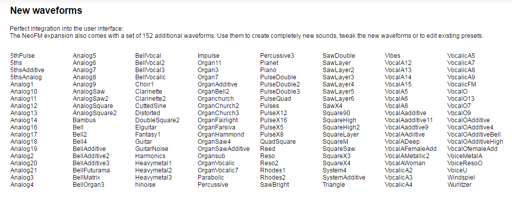 - Unique sound by using the innovative neoFM synthesis