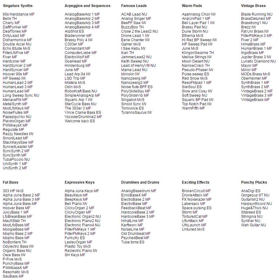 - Gritty basses, weaving arpeggios, expressive pads, screaming synths, dirty leads and vibrant brass