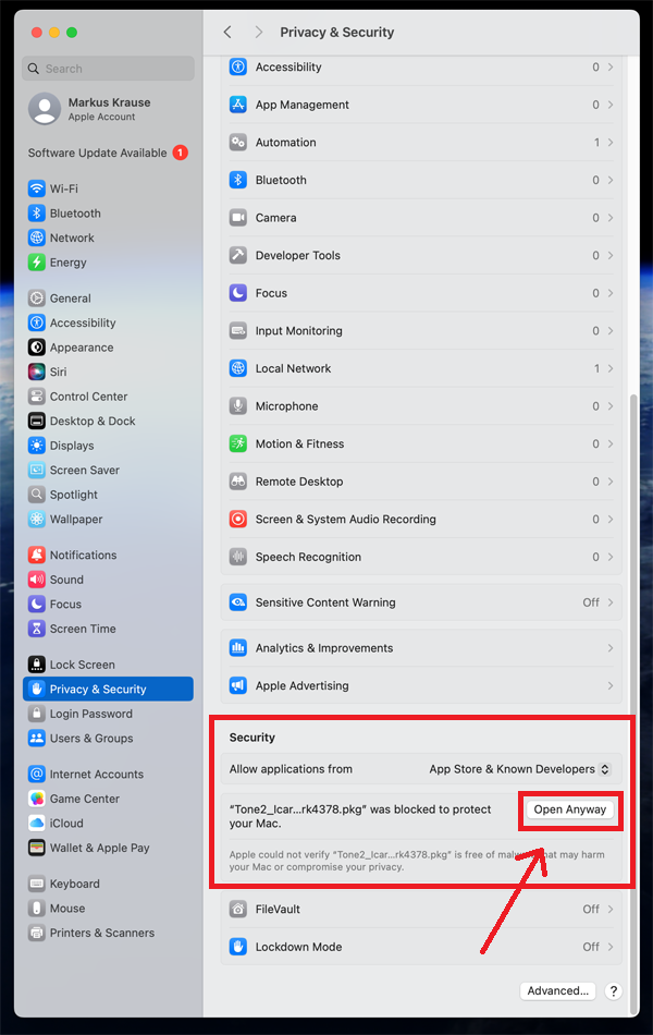 2) Open 'Privacy & Security' and scroll down to 'Security'