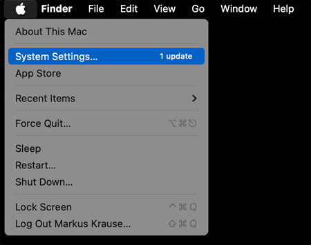 1) Click on the Apple logo on the top left and open 'System Settings...'